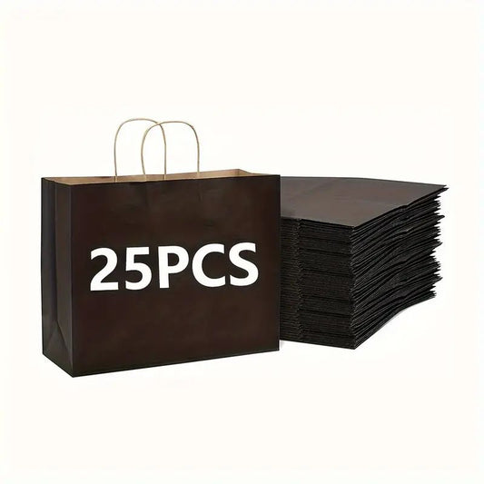 25 Packs, Large Brown Paper Bags With Handles Kraft Gift Bags Bulk, 12.5 * 4.3 * 9.8 Inch For Birthday Party Grocery Retail Shopping Business, Cheapest Items Available, Sale, Shopping Bag, Party Bag, Party Gift Bag, Craft Tote Bag