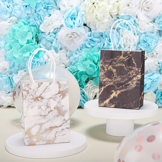 50pcs, Marble Pattern Kraft Paper Tote Bags, 25 White Golden And 25 Black Golden, Small Business Supplies, Shopping Bag, Party Bag, Party Gift Bag, Craft Tote Bag, Party Favors, Birthday Decor, Party Gift Decor, Wedding Decor, Party Supplies