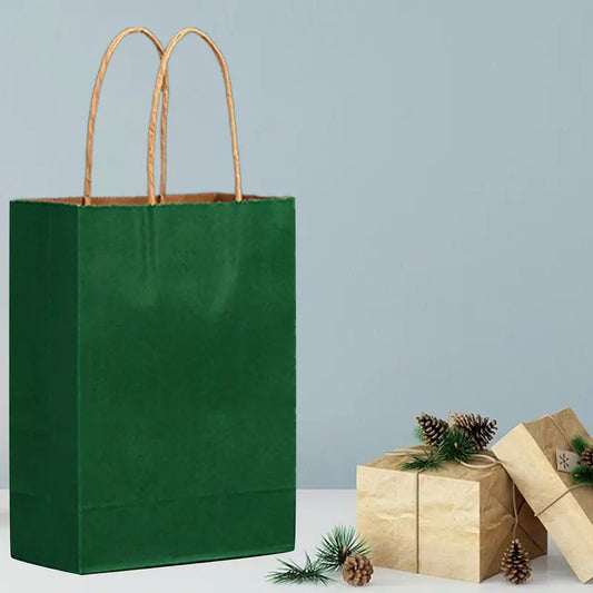 8/12/25/50/100pcs, Dark Green Portable Kraft Paper Bags, Practical Party Gift Bags, With Textured Colors, Suitable For Various Party Activities, Christmas, Halloween, Thanksgiving, St. Patrick's Day And Other Family Gatherings, Birthday Gift Bags