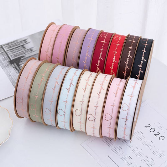 SB-Ribbon,Fresh Flower Packaging Ribbon,Floral Art Foil-Stamped Twill Ribbon,Love Is Eternal Letter Floral Bouquet Ribbon