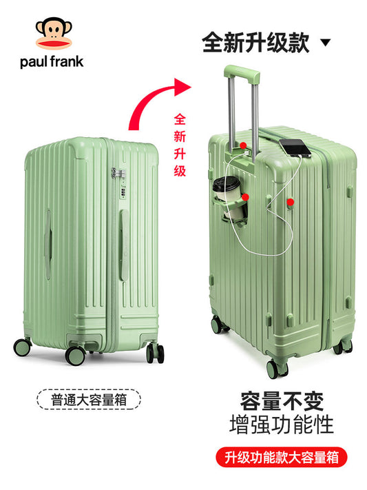 20/24/26-inch travel boarding case, functional trolley suitcase, with password lock, with USB charging port, with a separate water bottle holder, with a hanging hook.