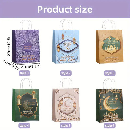 18pcs, Ramadan Portable Paper Bags, 6 Styles, Shopping Bags, Holiday Party Gift Bags, Suitable For Retail, Grocery, Boutique, Merchandise, Party Gifts, Weddings, 10.6x8.3x4.3 Inches