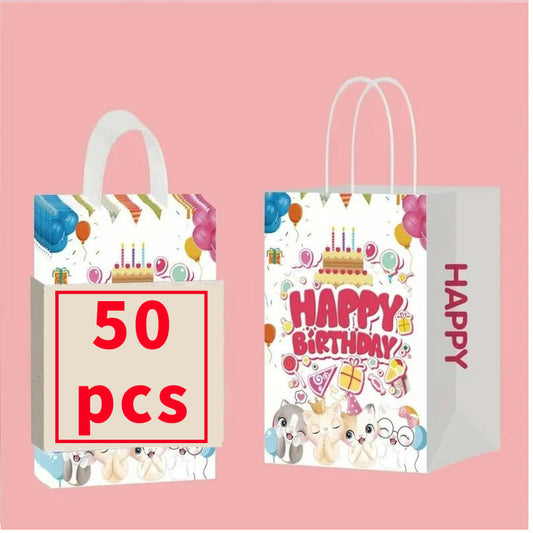 10/50/100 pcs, Happy Birthday Cute Kitten Tote Bag, Birthday Gift Bag, Shopping Bag, Candy Bag, Baking Supplies Bag, Gift Bag For Birthday Party