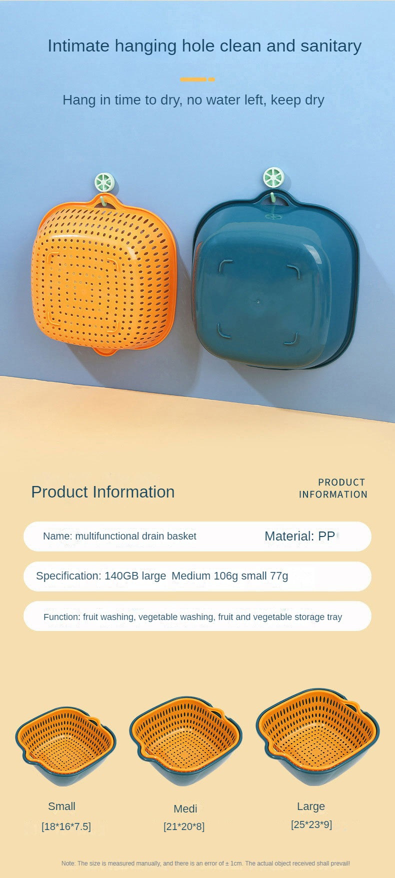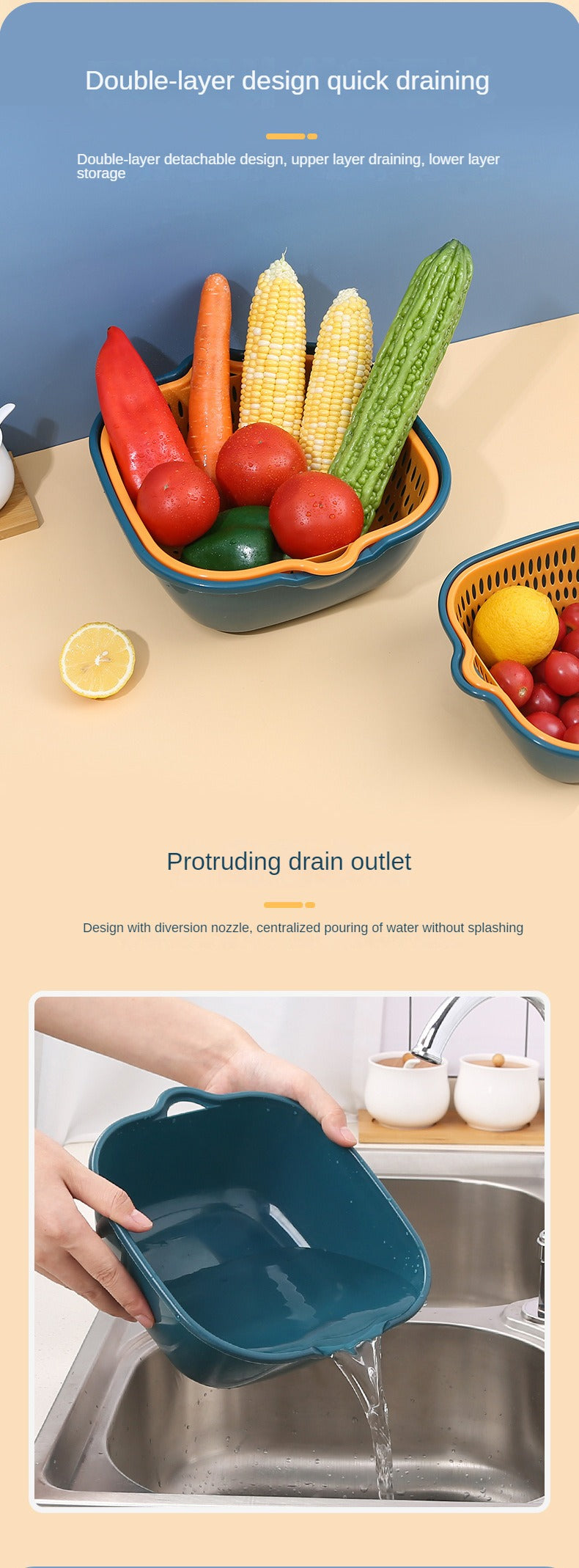 Home Kitchen Multifunctional Plastic Square Vegetable Wash Basket Double Drainer Basket Six-piece set