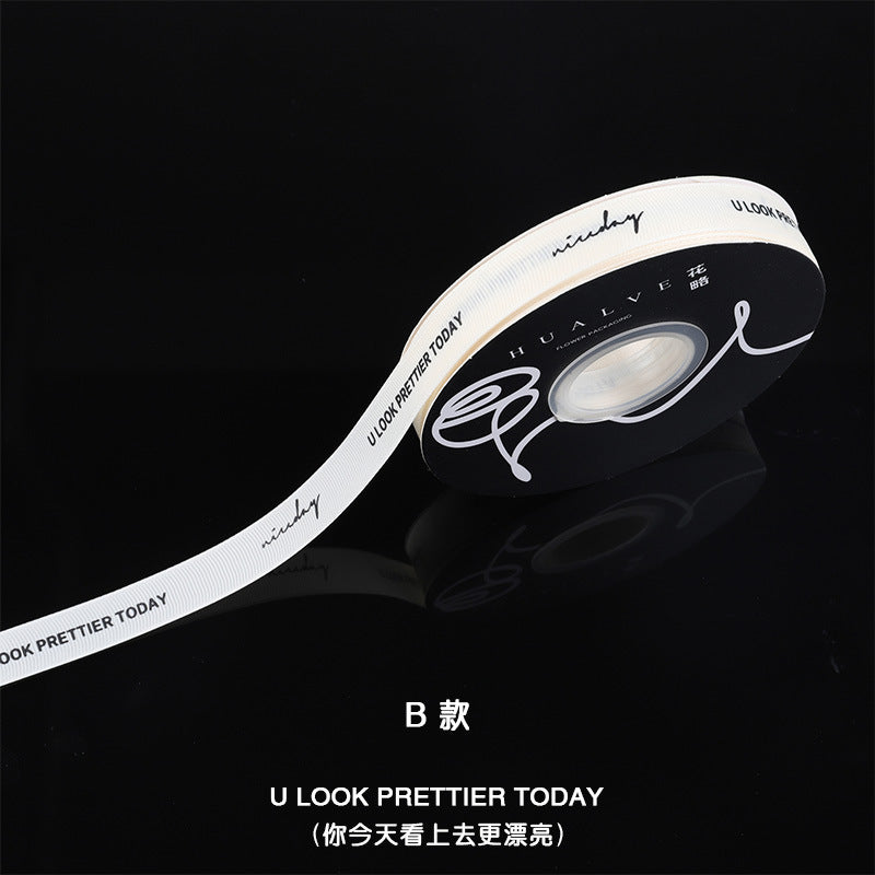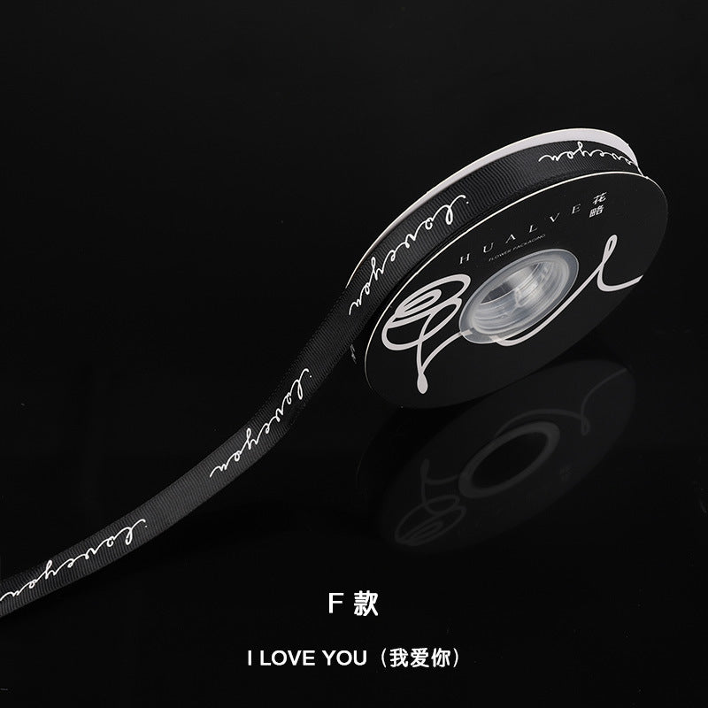 SQ-alphabet jacquard ribbon,floral art packaging satin ribbon,bouquet gift box bow ribbon,1.5cm English ribbon