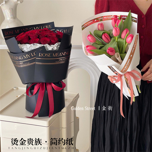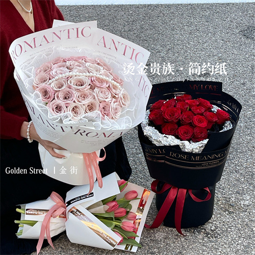 Valentine's Day Foil-Stamped Noble Minimalist,Waterproof Flower Wrapping Paper,Trendy Packaging Paper